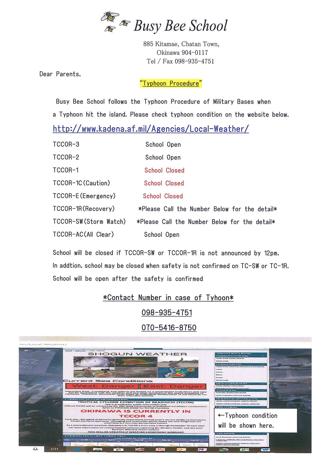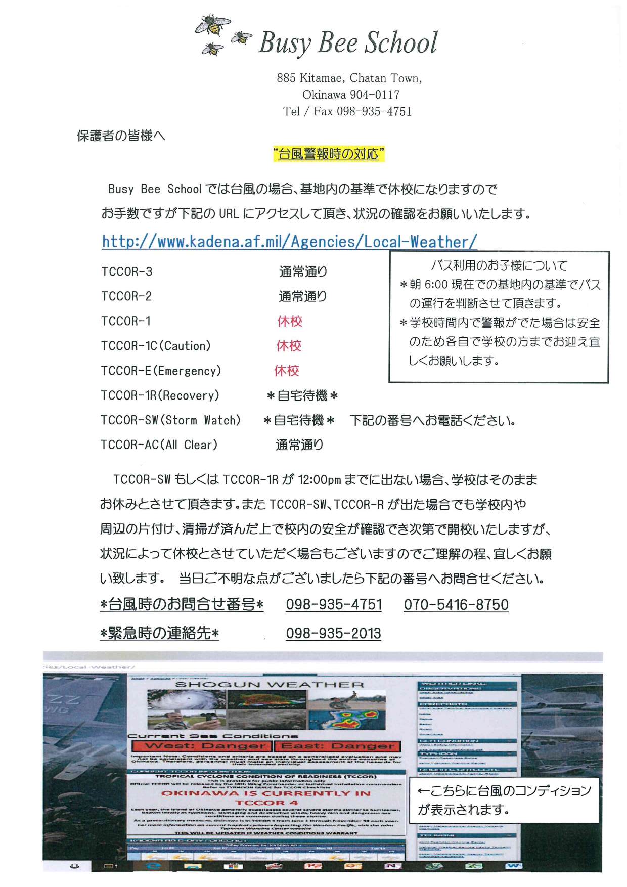 Click here for latest typhoon condition現在、台風が接近しております。台風の影響により⭕️月⭕️日(⭕️)はお休みになる可能性がございます。台風の状況に関しましては"台風時の対応" をご参照の上"台風最新情報"をご確認ください。