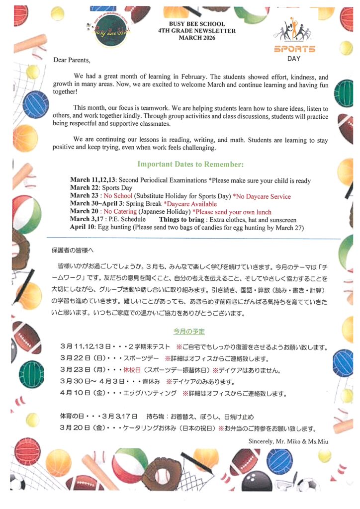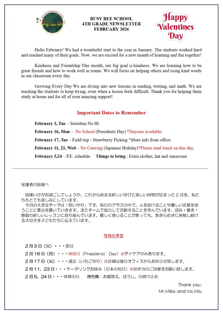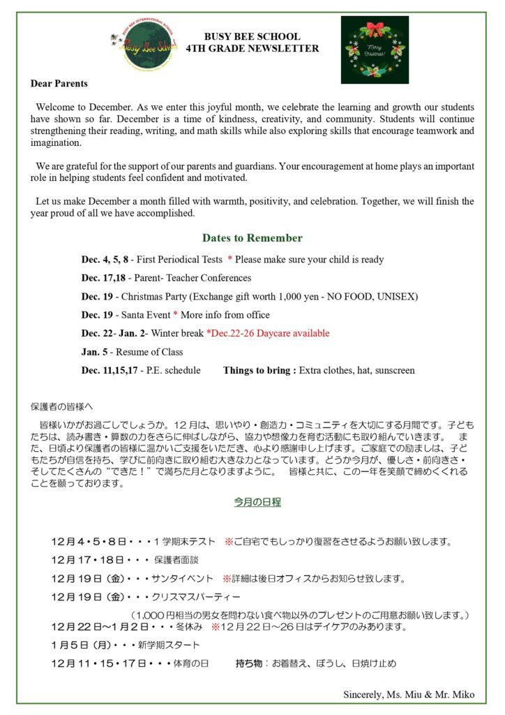 4th Grade Newsletter